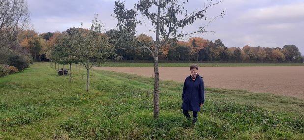 Dieser Baum wird Früchte tragen. Davon ist Ute Werner (Bild), frühere Vorsitzende des Krankenpflegevereins Pflugfelden, überzeugt. Auf einem Wiesengrundstück am Ortsrand des Pflugfeldens wurden vor