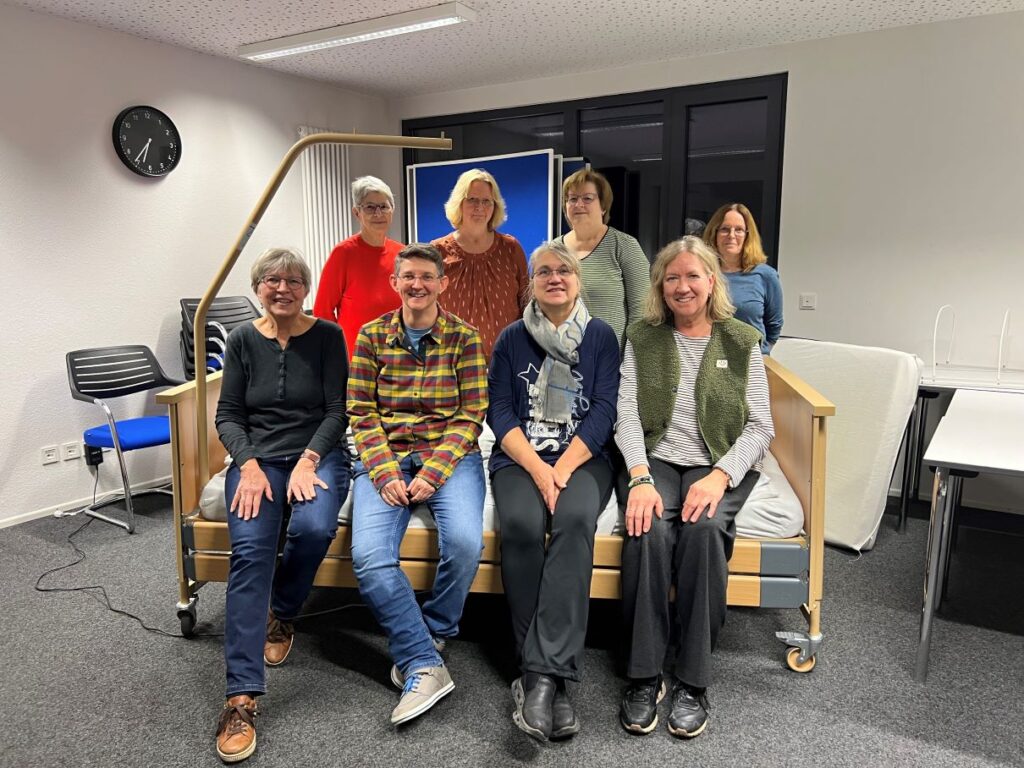 Bei dem sechswöchigen Seminar Lehrgang unter Leitung der Pflegefachkraft und zertifizierten Pflegeberaterin Monika Woppmann (1.Reihe, 2.v.l.) erwarben sie an vielen praktischen Übungen Sicherheit im Umgang mit alltäglichen Verrichtungen. Das erworbene Wissen ersetzt zwar keine umfassende Pflege oder medizinische Versorgung, es dient aber als grundlegendes Handwerkszeug, um pflegebedürftigen Menschen helfen zu können. Die Diakonie- und Sozialstation Ludwigsburg bietet den Kurs zweimal im Jahr in ihren Seminarräumen in der Karlstraße 24/1 in Ludwigsburg an.